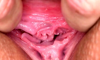 年轻的少女显示她的阴唇在关闭了她的凸轮
